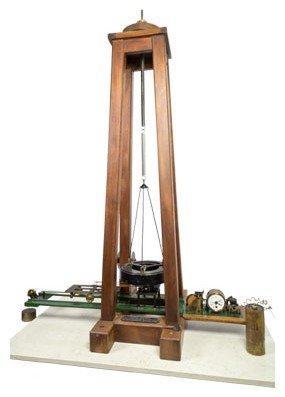 Un telaio a tronco di piramide di legno e base quadrata, fissata a un basamento di pietra o muratura, sostiene il sistema pendolare dello strumento: una massa di ferro, di forma toroidale a sezione rettangolare e del peso di 10 chilogrammi. La massa, sospesa con un accoppiamento filo-molla alla sommità del telaio, porta al centro un perno di acciaio, sferico nella parte inferiore. Il telaio è munito di due rotaie su cui scorre un carrello a tre ruote che trasporta una lastra di vetro affumicata, trascinato da un peso.