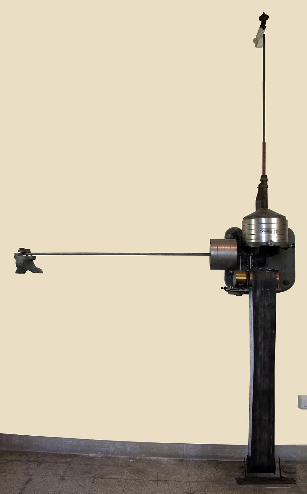 Lo strumento si compone di un pendolo verticale di 1,5m (n destra nell'immagine) e di una massa di 100kg. Il moto relativo della massa è amplificato da una leva verticale costituita da un tubo di sottile lamina di alluminio, fissato a un cerchietto dello stesso metallo.