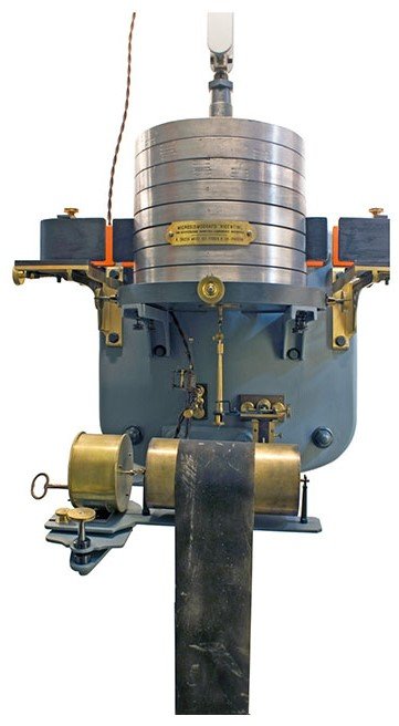 La registrazione del tempo viene effettuata sul nastro di carta affumicata da un terzo pennino scrivente, comandato dall'àncora di un elettromagnete inserita in un circuito elettrico comprendente anche un pendolo di precisione. La chiusura del circuito avviene a ogni minuto tranne una volta all'inizio di ogni ora, in modo tale da poter facilmente calcolare il tempo.
