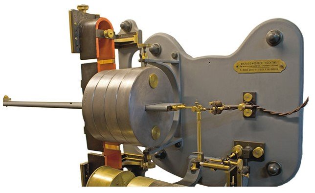 Microsismografo verticale Vicentini Giuseppe Vicentini (1860 - 1944) Strumento che insieme alla versione per le componenti orizzontali del moto sismico è stato il più sensibile per alcuni anni a cavallo fra Ottocento e Novecento. |