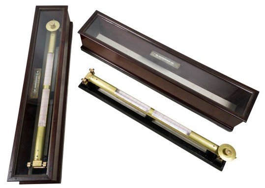 Ciascuna livella, prodotta dall’Officina Salmoiraghi di Milano, è costituita da una fiala di vetro contenente acqua e una bolla d’aria. La fiala è parzialmente rivestita da un tubo cilindrico di ottone fissato a un supporto di ghisa. Sul vetro sono incise 90 divisioni a distanza di 3mm corrispondenti a un’inclinazione di 1.5 secondi di grado. All’estremità di ciascuna livella una vite micrometrica consente la regolazione della posizione della bolla d’aria. Una custodia in legno, chiusa in alto da una lastra di vetro, protegge la livella da eventuali correnti d’aria e contiene un termometro, a doppia scala Réaumur e Celsius, per comparare le dilatazioni della bolla.