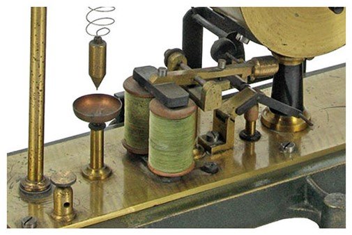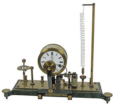 L’esemplare della figura in apertura è una variante costruttiva unica; è dotato anche di una rotella di trascinamento per la carta telegrafica, solidale al perno di rotazione delle lancette dell’orologio, e di un pennellino collegato al sistema di sblocco dell’orologio. Per ogni attivazione dell’elettrocalamita il pennellino, intriso di inchiostro, segna un punto sulla carta.