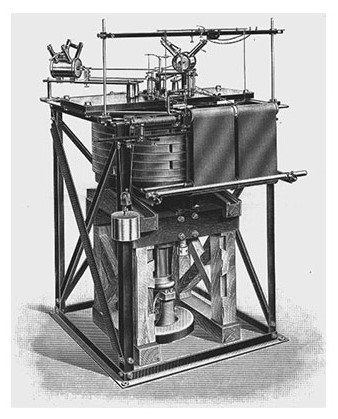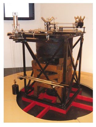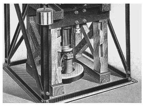 Microsismografo astatico orizzontale Wiechert da 1000kg Emil Wiechert 1903 Strumento che ha cambiato la storia della sismologia strumentale, con l'introduzione dello smorzamento in un sismografo meccanico. |