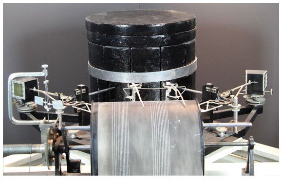 Sismografo astatico orizzontale Wiechert da 200kg Emil Wiechert 1903 Strumento che per efficacia della sua progettazione, compresa l'introduzione di un sistema di smorzamento, ha avuto una grande diffusione nel mondo. |
